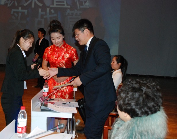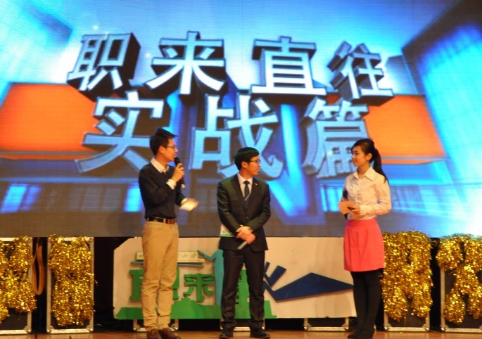 “职来直往”活动通过学院推荐、自由报名、技能培训、岗位对接等几次选拔和培训共100余人参与到活动中,最终遴选出60余名选手进入“职来直往 实战篇”。实战招聘会分为“求职者开场”、“职场零距离”、“职业正能量”和“职面新未来”四个环节,求职者各显其能展示才华与嘉宾互动,各企业代表向选手提问,为求职者提出切实可行的意见,同时每一场招聘会都会聘请专业点评,对选手的突出、共性问题给予建议,使选手的就业技能、职业意识不断提高,也为现场观众增强了专业知识、提升了求职技巧、丰富了招聘实战经验。在经过与企业达人几个小时的直面交流后,共有37位应聘者脱颖而出,最终与心仪企业签约,成功率达到70%。来自商大能源与建筑工程学院的陈传玉以出色的表现赢得了各位企业达人的青睐,并现场与滨才房地产开发集团人力资源总监徐波先生签约。迁安市思文科德金属包装有限公司陈海丰先生在随后的采访中提到,在这次的“职来直往”活动中充分感受到了商大学生的谦虚、好学与上进,希望同学能够充分发挥自身潜能,找到属于自己的岗位。