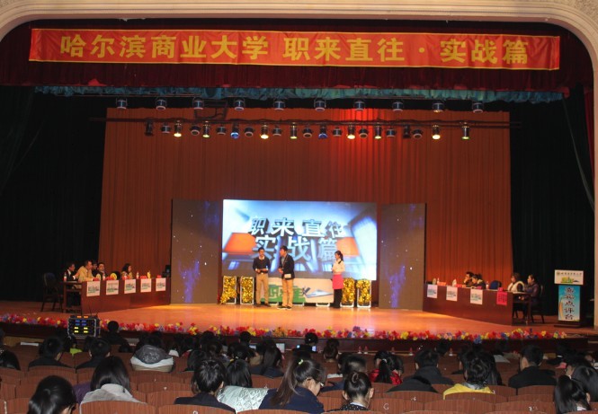 2013年11月9日哈尔滨商业大学双选会正在进行的同时,另一场由哈尔滨商业大学就业指导中心、校团委、校学生会联合举办的“职来直往 实战篇”现场招聘会也正在紧张地进行着。招聘会共为三场,我校南北校区同时进行。此次招聘会邀请到了北京恒宇嘉业房地产经济有限公司总经理刘俊德先生、杭州四喜信息技术有限公司邱丽娟女士,武汉新世界制冷工业有限公司人力资源部部长贾丽霞女士等34家知名企业的代表作为签约企业。本次活动立足于帮助毕业生寻找理想就业单位、拓宽就业途径,增强学生就业意识,为用人单位与优秀毕业生搭建面对面沟通平台。