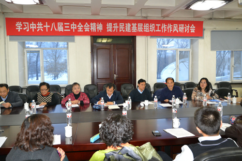 民建省直哈商大支部“学习中共十八届三中全会精神,提升民建基层组织工作作风”研讨会于2013年11月24日在商大南校区召开。会议围绕深入学习中共十八届三中全会精神,提升民建基层组织工作作风;学习传达落实民建全国基层组织建设研讨会经验;传达民建省委中心工作精神;总结支部2013年工作情况,研究2014年支部工作规划等进行了认真热烈的学习、研讨。民建省委副主委肖建敏,组织部部长张卫东、副部长董明宪;学校党委副书记李秉治,统战部长李滨芬,以及民建商大支部部分会员参加了会议。支部主委景侠教授主持会议。