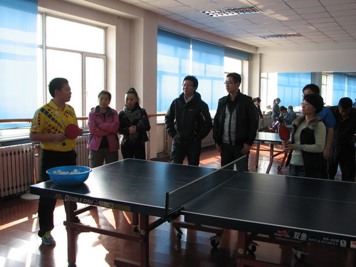 为提高我校教职工乒乓球的技术水平,应广大会员的要求,校工会和体育学院联合分别于10月18日、10月22日中午在体育场105室举办了两期教职工乒乓球培训班。校工会李晓梅主席莅临培训现场,两期共计有60多位教职工参加了培训。