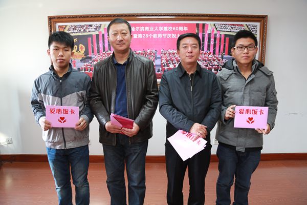 11月1日上午,黑龙江省慈善总会“爱心饭卡”捐助仪式在我校A区行政中心三楼会议室举行,仪式由学生工作处处长冉庆国主持。黑龙江省慈善总会秘书长张智、校党委副书记杨殿军出席捐助仪式,学生工作处资助服务中心、部分学院党总支书记和12名学生代表参加捐助仪式。