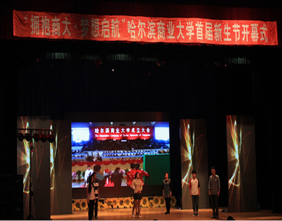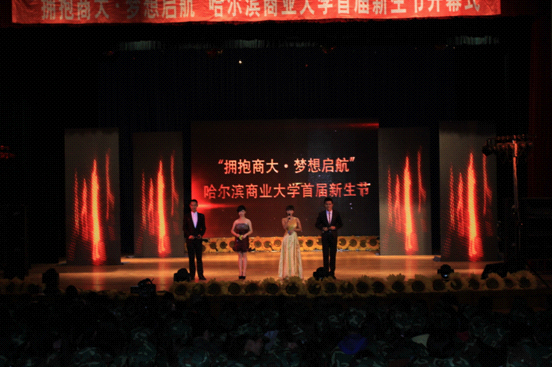 莘莘学子聚一堂,冰城商大新气象;金秋送爽丹桂香,青春梦想再启航。近日,以“拥抱商大�梦想启航”为主题的哈尔滨商业大学首届新生节开幕式文艺演出在B区大礼堂成功举办。我校2013级全体新生及军训教官观看了迎新晚会,本次文艺演出采用巡回演出方式,观看人数超过4000人。