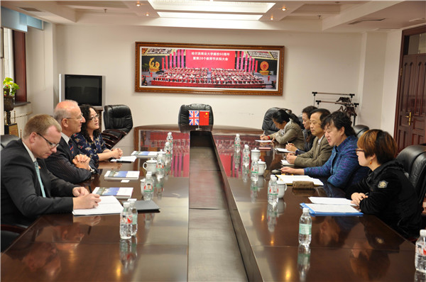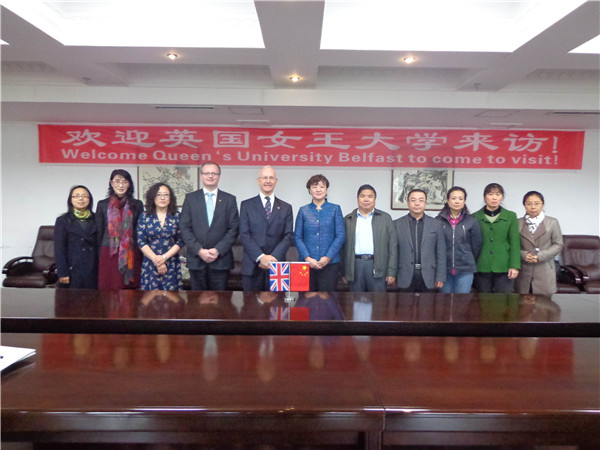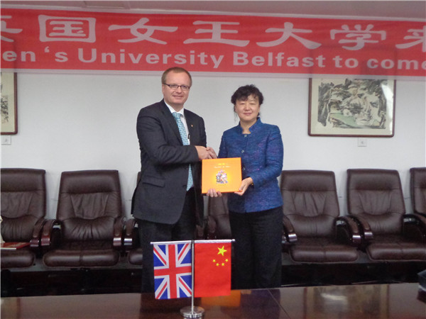 2013年10月11日,应国际合作处邀请,英国贝尔法斯特女王大学校长特使医学健康与生活科学院院长高曼·肖恩教授、国际合作处处长德瑞克·韦尔和中国市场主管莫妮卡·杨一行三人来访我校。副校长张晓丹教授在行政楼三楼会议室接见了女王大学代表团一行,哈商大国际合作处处长刘龙洋、国际教育学院总支书记曹际燕、金融学院院长李国义、设计艺术学院院长王宝成、李春芳主任、法学院院长石晶玉、会计学院副院长徐鹿、经济学院张金萍主任等参加了会见。