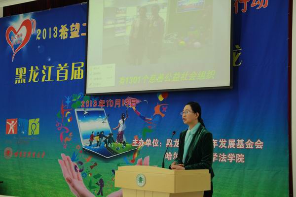 2013年10月13日上午9点,哈尔滨商业大学法学院和黑龙江省青少年发展基金会在我校主楼模拟法庭共同主办了“黑龙江首届希望工程激励行动公益沙龙”,以建立我省2013希望工程公益慈善项目实施者之间的对话,进一步有效整合公益慈善资源,促进我省青少年公益事业的健康发展。