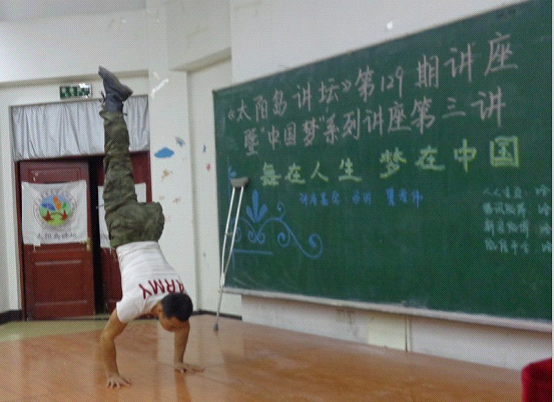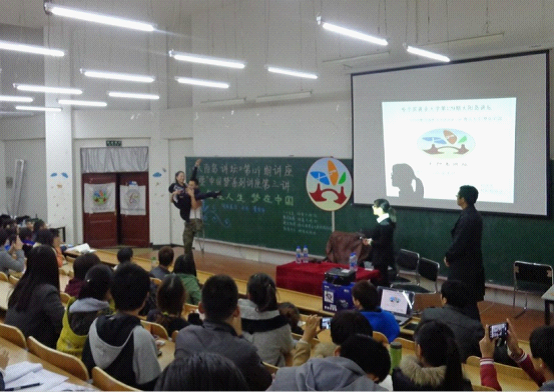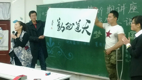 10月14日下午,由校团委主办,校大学生科技协会承办的第128期太阳岛讲坛暨“中国梦”系列演讲第三讲在A区四号楼4107教室举行。本期讲坛, 我们邀请到了“中国达人秀”全国四强——马丽和翟孝伟两位著名的残疾人舞蹈家做客商大,与商大学子近距离交流。