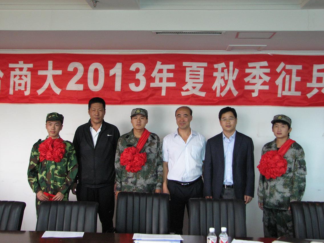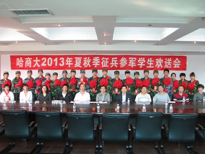 李秉治副书记等领导为入伍学生佩戴红花,赠送慰问金。他首先代表学校,对21名同学将在近期光荣入伍,加入解放军这个人们非常羡慕的群体而表示热烈的祝贺!对在征兵工作中的各个职能部门及各学院的辛勤工作表示感谢!参军是人生旅途中一件大事,既是人生的历练,又是人生的机遇,有关同学能有这个机遇,希望大家到部队后,能够在部队这个大熔炉里,还要继续学习,把我们所学的知识,大学精神与自身的生活、学习、工作相结合,还要抓住这个节点,磨练自己,锻炼自己,把自己真正锻炼成为祖国的有用人才,为保家卫国的事业中做出贡献!哈商大为你们骄傲,哈商大期待着大家在人生的旅途中,为国防、为学校争光!
