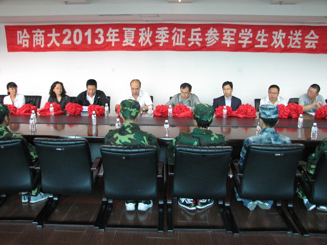 9月5日,我校在行政楼五楼会议室召开2013年新兵入伍欢送会。学校党委副书记李秉治,武装部、教务处、学生处、学工部、宣传部、团委等职能部门负责人,相关学院的总支书记、辅导员、入伍学生(其中含女学生3人)出席了欢送会。会议由武装部部长韩国纲主持。