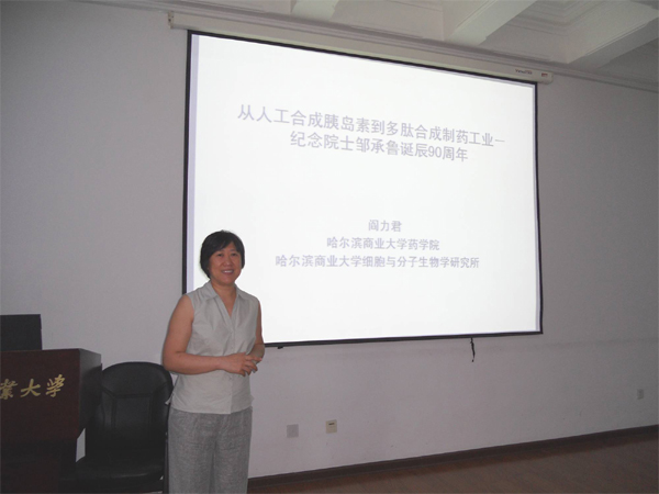 8月16日下午,由哈尔滨商业大学理科研究院、哈尔滨商业大学生命科学与环境科学研究中心、哈尔滨商业大学中药学博士后流动站、哈尔滨商业大学药物研究所博士后科研工作站、国家教育部抗肿瘤天然药物工程研究中心共同主办的“生物医药环境博士后学术论坛”(Biomedicine & Environment Postdoctoral Forum)在哈尔滨商业大学南区主楼大会议室成功举行第二期论坛讲座。哈尔滨商业大学理科研究院副院长李文兰教授主持论坛,专家、相关学科负责人、教师、博士后、博士及硕士参加了本次论坛。英国牛津大学博士后,龙江学者特聘教授阎力君教授做了题目为《从人工合成胰岛素到多肽合成制药工业-纪念院士邹承鲁诞辰90周年》的报告。哈尔滨商业大学理科研究院范玉玲博士做了题目为《纳米粒子研究进展》的报告。报告期间,参加论坛活动的博士后和博士与报告人围绕报告内容展开了活跃的互动交流,气氛热烈,营造了良好的学术氛围。
