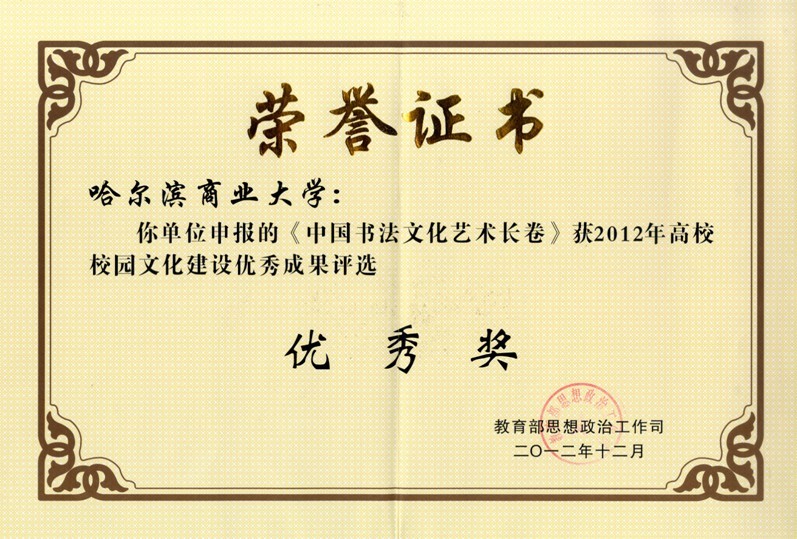 近日,教育部公布2012年高校校园文化建设优秀成果评选结果,我校申报的《中国书法文化艺术长卷》喜获优秀成果奖。