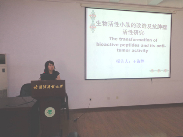 8月20日下午,由哈尔滨商业大学理科研究院、哈尔滨商业大学生命科学与环境科学研究中心、哈尔滨商业大学中药学博士后流动站、哈尔滨商业大学药物研究所博士后科研工作站、国家教育部抗肿瘤天然药物工程研究中心共同主办的“生物医药环境博士后学术论坛”(Biomedicine & Environment Postdoctoral Forum)在哈尔滨商业大学南区主楼大会议室成功举行第三期论坛讲座。哈尔滨商业大学理科研究院副院长李文兰教授主持论坛,专家、相关学科负责人、教师、博士后、博士及硕士参加了本次论坛。哈尔滨医科大学博士,哈尔滨商业大学药学院王淑静博士后做了题目为《生物活性小肽的改造及抗肿瘤活性研究》的报告。哈尔滨工业大学博士,哈尔滨商业大学食品工程学院左金龙博士后做了题目为《饮用水源中几种典型污染物及其处理技术》的报告。报告期间,参加论坛活动的博士后和博士与报告人围绕报告内容展开了活跃的互动交流,气氛热烈,营造了良好的学术氛围。