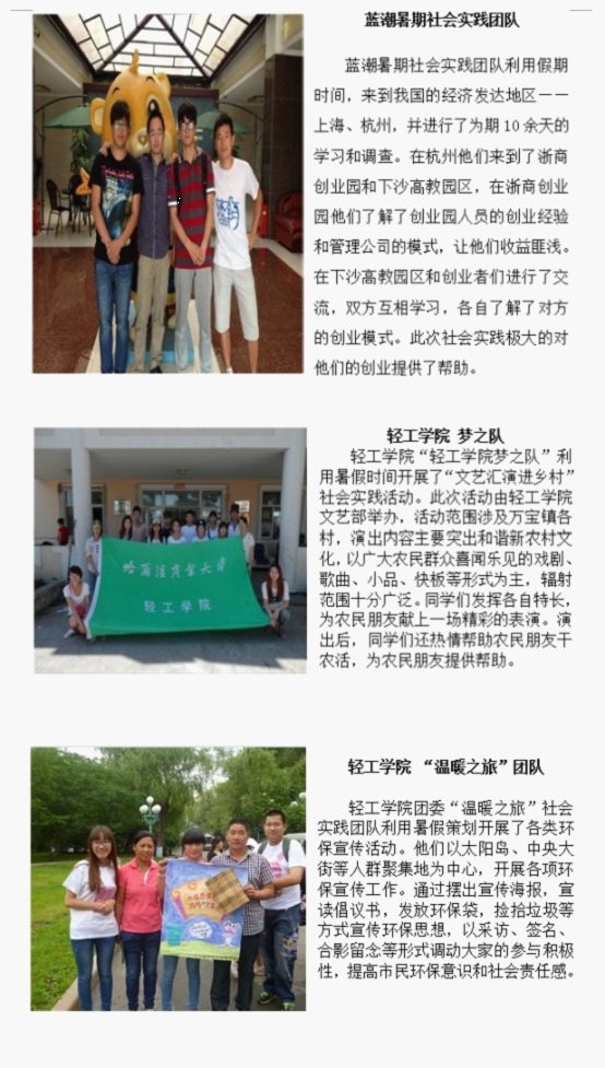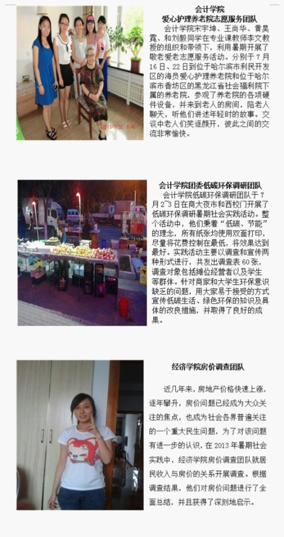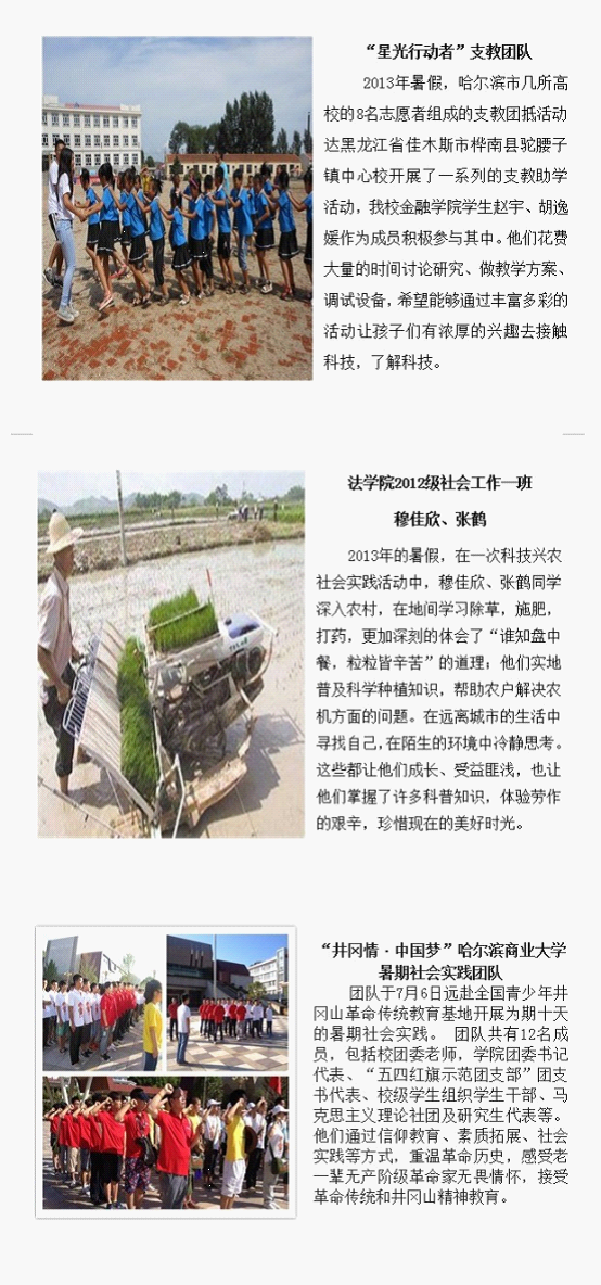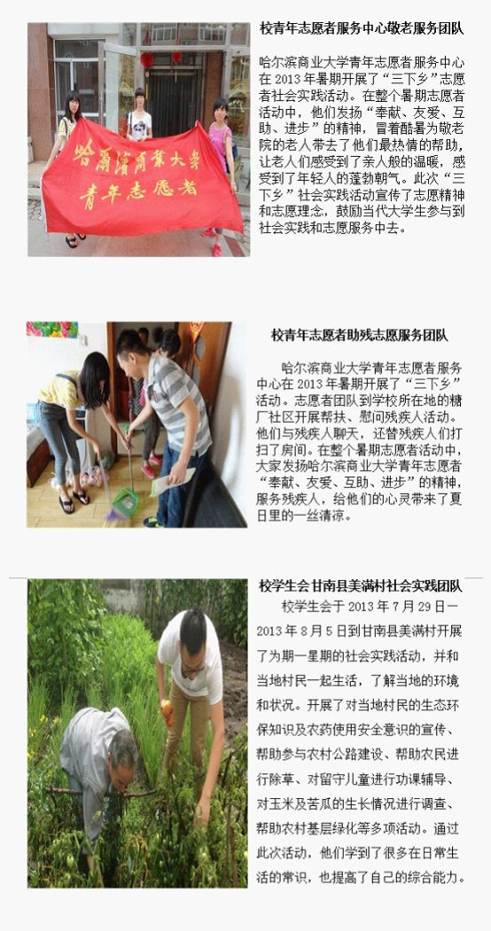 ——哈尔滨商业大学学生志愿者暑期社会实践活动掠影