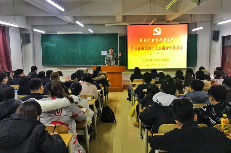 宋真的报告题目是“不忘初心 砥砺前行”。宋真就十九大报告的主要内容、重大意义、如何学习贯彻宣传十九大精神等方面详细解读了十九大报告精神。宋真指出,中国共产党人能够不断前进的根本动力源于初心和使命。中国共产党人的初心和使命就是为中国人民谋幸福,为中华民族谋复兴。要深刻领会习近平新时代中国特色社会主义思想的历史地位和指导意义。新时代中国特色社会主义思想是我党经过艰辛的理论探索,取得的重大理论创新成果,是新时代坚持和发展中国特色社会主义的基本方略的指导思想。明确“两个一百年”奋斗目标,砥砺前行。十九大报告提出,我们既要全面建成小康社会、实现第一个百年奋斗目标,又要乘势而上开启全面建设社会主义现代化国家新征程,向第二个百年奋斗目标进军。宋真号召全体师生不忘初心,牢记使命,认真习近平新时代中国特色社会主义思想,加强自身修养;树立正确的世界观、人生观。