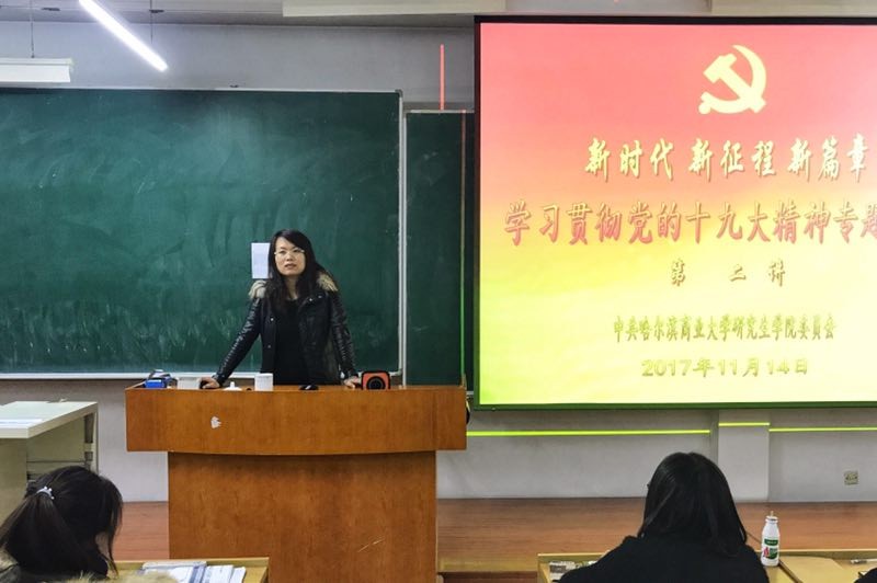 11月14日,研究生学院举行十九大精神专题报告会。马克思主义学院党总支书记宋真、金卓博士分别为研究生学院师生作党的十九大精神解读专题报告。
