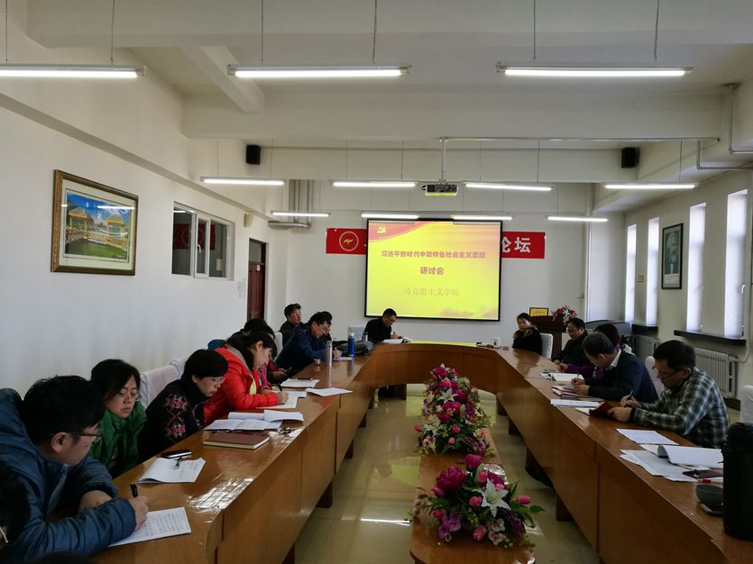 11月15日,围绕“深入学习贯彻党的十九大精神”这一主题,马克思主义学院党总支召开学习习近平新时代中国特色社会主义思想集中研讨会。会议由马克思主义学院党总支书记宋真主持,马克思主义学院全体教师参加会议。