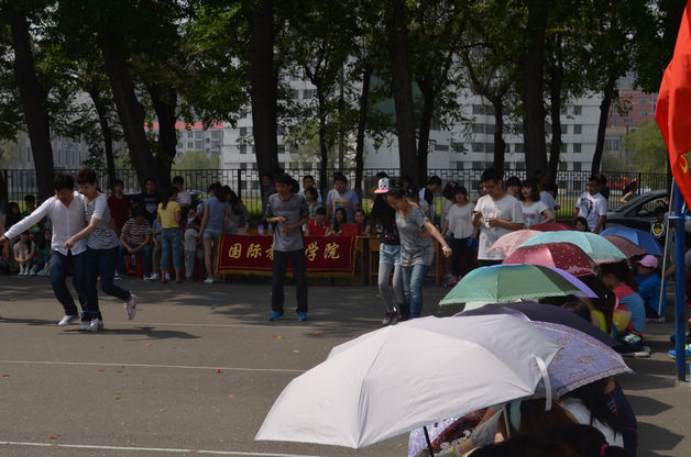 2013年5月26日上午九点,国际教育学院在南区篮球场举行了学院第三届春季趣味运动会,参加此次活动的有学院党总支书记曹际燕老师,院团委书记张欣老师以及大一至大四全体学生。活动旨在加强学生的身心健康建设,强健体魄,突出特色与创意,体现欢乐共享的和谐校园气氛。