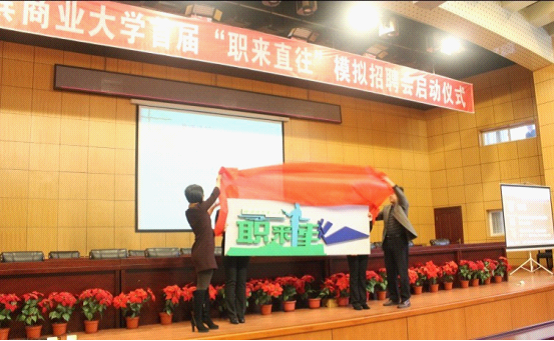 团委贾妮燕老师和就业指导中心赵炎主任为模拟招聘会揭幕