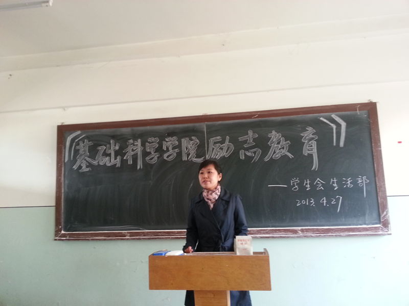 2013年4月27日在B-04楼 2202教室,基础科学学院学生会生活部组织贫困生召开了大学生励志教育交流会,团委书记孙岩老师出席了此次会议。中午12:30会议正式开始,会议由郭劲同学主持。学生出席情况良好,气氛十分活跃,几位贫困生代表分别进行了发言。