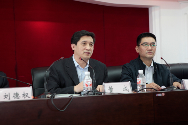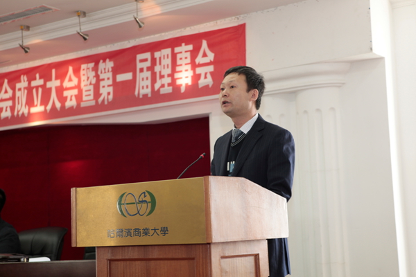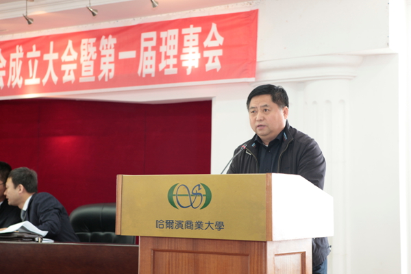 哈尔滨商业大学党委书记、博士生导师刘德权教授在成立大会上讲话