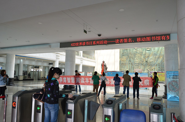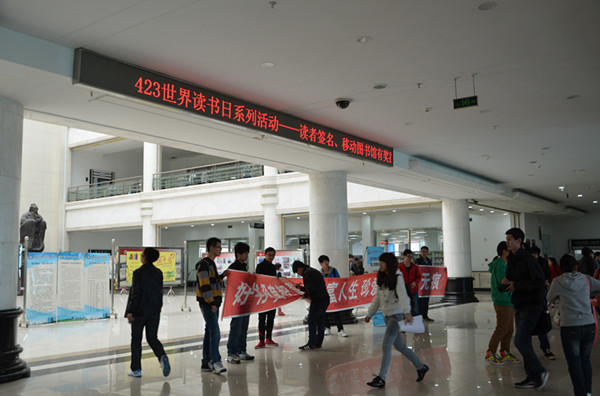 好书孕育智慧,阅读丰富人生。在4月23日——第18个“世界读书日”来临之际,图书馆开展了“图书漂流”捐书活动、优秀读者表彰活动、珍爱图书签名活动等一系列主题宣传活动,以浓厚校园文化氛围,发挥图书馆的教育和服务职能,引领读者文明使用图书馆。