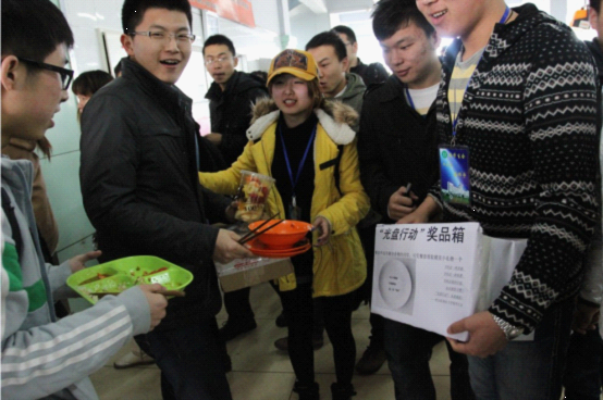 按照黑龙江省教育厅下发的《关于在高等学校开展反对餐桌浪费专项行动》文件要求,校团委、学生工作部、后勤总公司按照学校党委工作部署,号召全校师生开展“厉行节约,反对浪费”系列活动,4月7日校学生会在A区食堂开展了哈尔滨商业大学“光盘行动”主题活动,活动包括“签名行动”、“奖励‘光盘战士’”、“光盘创意形象字”和“比比谁盘光”等环节。在本次活动中我校同学踊跃参与并积极践行节俭精神,倡树厉行节约之风,树立了良好的育人氛围。