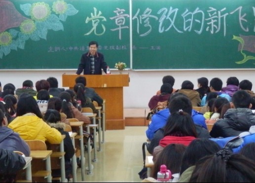 此次会议中,中共道里区委党校副校长王滨同志给我院全体党员和积极分子做了一场主题为“党章修改的新飞跃”的讲座。王滨同志从各个时期党章的特色为出发点,提出党史发展的新见解,客观地评价了党在各个时期的伟大领袖的功与过。然后,他就“十八大”中对党章的修改概括出三个特点:科学发展观的新定位、中国特色社会主义理论的再完善、坚持改革开放的新充实。最后,他对全体党员和积极分子提出了寄语——“读书可以名理,读史可以明智”。在讲解过程中,王滨同志结合同学们的实际,鼓励同学们敢于担当,勇于奉献,乐于助人,热爱和谐,把党的思想充分运用到社会实践中去。讲座十分精彩,会议现场气氛热烈。