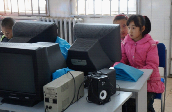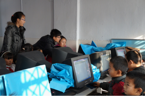 哥哥姐姐很细心——志愿者承担起孩子们的微机课