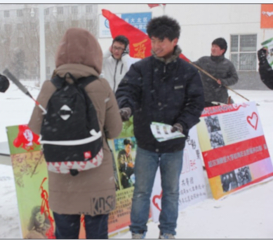 轻工学院温暖之旅爱心社在全国第十五届“爱耳日”为聋哑儿童和老人带去慰问品和精彩的节目,同时学院团委将学习雷锋活动与共青团微博建设相结合,倡导“微博传递雷锋精神”,切实发挥“红色网络”灵活、互动、快捷,辐射广泛的特点,真正将雷锋精神带进生活。会计学院团委以“天天雷锋日,人人志愿者”为主题的小广告清理活动为牵引,从细微小事的层面引导学生践行志愿精神。曾在2012年度校园之星评选活动中脱颖而出的金融学院“爱心蒲公英”社团在院团委的指导下将敬老、爱老的传统美德作为志愿服务的重要内容,走进了哈尔滨市松北镇红光村苑家屯招恩老年公寓,为老人们送去了爱心,送去了温暖。管理学院以“雷锋精神永驻我心”为主题,面向校内外开展了街市义赠及社区服务活动,法学院则依托师资专业优势深入共建设区进行普法宣传。能建学院把服务重点立足于关注师生出行,以清雪活动为牵动号召大家以实际行动发扬雷锋精神。