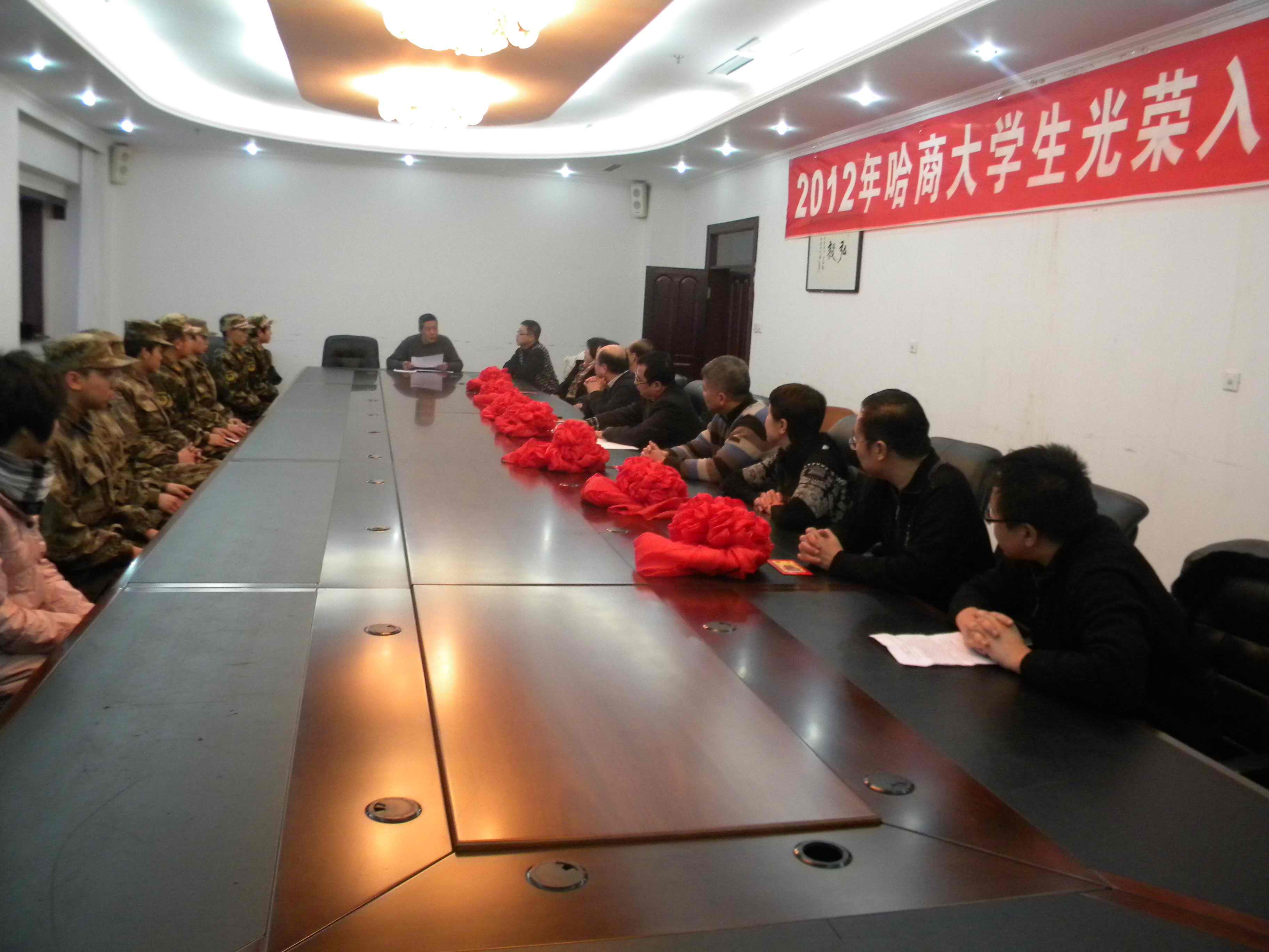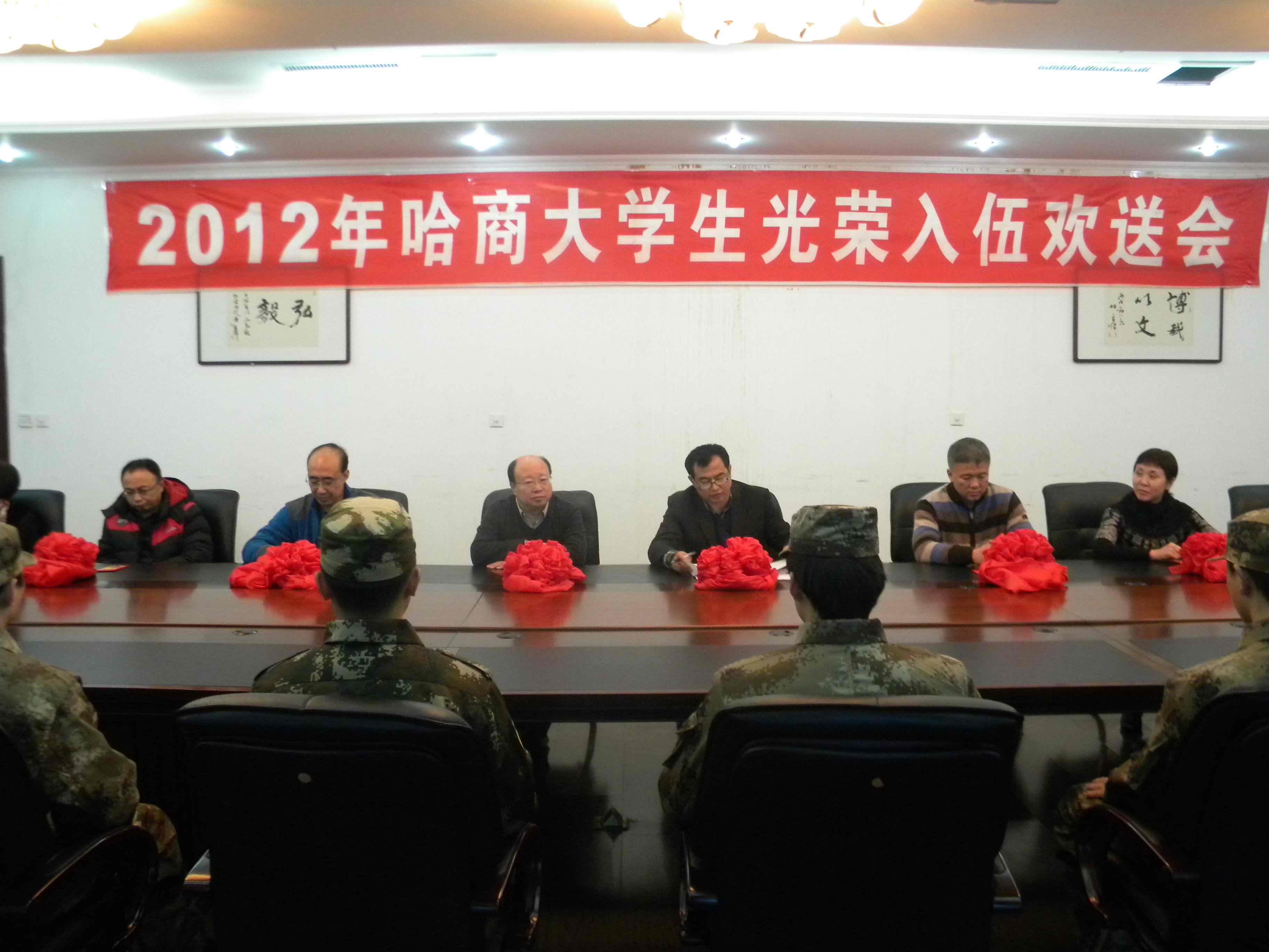 12月10日,我校在行政楼六楼会议室召开2012年新兵入伍欢送会。学校党委副书记李秉治、武装部、教务处、学生处、学工部、宣传部、团委等职能部门负责人,相关学院的总支书记、辅导员、入伍学生和即将入伍的女学生出席了欢送会。会议由武装部军事教研室主任王亮主持。