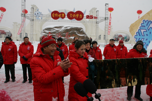 2012年12月21日上午10:00,第25届中国·哈尔滨太阳岛国际雪雕艺术博览会在太阳岛太阳广场开幕,开幕式上我校实践教学基地暨校企合作启动仪式揭牌仪式隆重举行。市委常委、副市长曲磊,市领导丛科明、顾福林、李志恒、我校党委书记刘德权教授出席开幕式。旅游烹饪学院石长波院长、财政与公共管理学院王曙光院长、金融学院李国义院长、职业技术教育学院石伟院长、经济学院项义军院长、会计学院张林院长、法学院石晶玉院长、管理学院谭士元书记、外语学院张琳副院长及200余名师生参加了开幕式揭牌仪式。