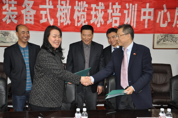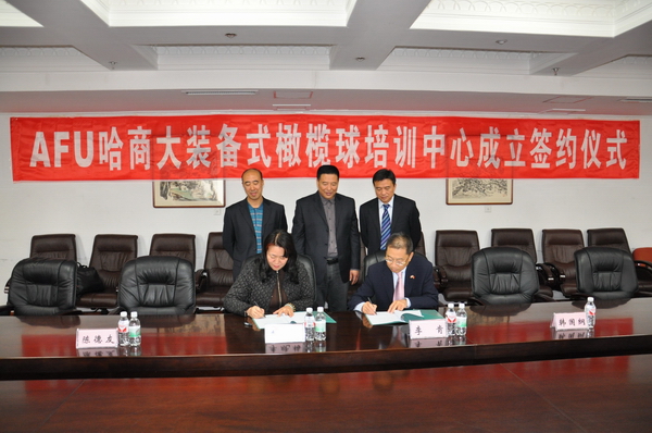2012年10月26日,中国第一家装备式橄榄球培训中心在我校成立。美橄联中国有限公司、哈尔滨商业大学双方经过友好协商,按照“合作共建、收益共享”的原则,就成立“AFU哈商大装备式橄榄球培训中心”(AFU-HUC Tackle Football Training Center)的事宜签署协议。