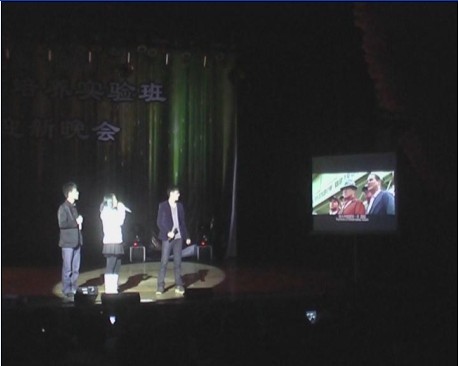 迎新晚会在一片热烈的气氛中拉开序幕,晚会开场的VCR凝结了实验班师生们生活和学习中的点点滴滴,感动了在场的所有师生,接下来是同学们魅力四射的舞蹈表演、唯美动听的歌曲串烧、栩栩如生的电影配音表演、让人捧腹大笑的话剧《骗》等等,一个个颇具创意的节目掀起晚会一个又一个高潮。最后,晚会在所有学生干部合唱的《旗开得胜》歌声中完美落幕。本次晚会最大的亮点是微博互动,同学们通过微博和短信的形式进行互动,表达了他们对晚会的美好祝愿和肯定。