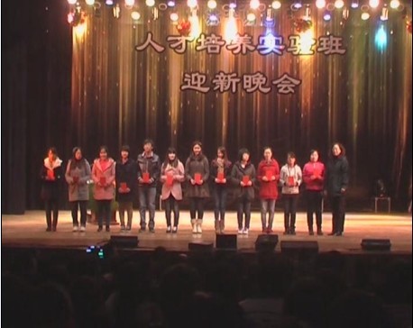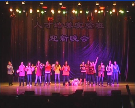在这次迎新晚会中,同学们热情奔放,共享充满激情的时光,相信所有新生定会展开年轻的翅膀,放飞心中的梦想,展现青春与风采,为人才培养实验班美好与绚丽的明天增添色彩。