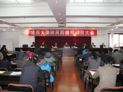 2012年10月10日下午13:30,我校在行政楼六楼会议室召开了廉政风险防控动员大会。校领导刘德权、李秉治、刘雪松、杨殿军、王江、于树彬、张晓丹、张志军,各单位、各部门党政一把手和各党总支副书记参加会议,纪委书记王江主持会议。