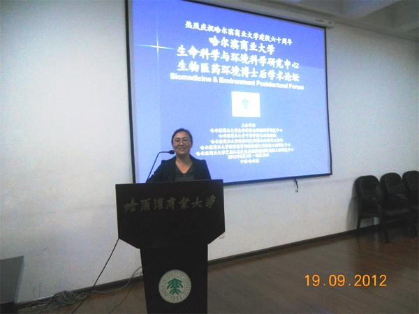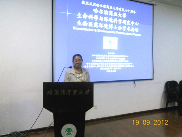 9月19日,由哈尔滨商业大学生命科学与环境科学研究中心、哈尔滨商业大学中药学博士后流动站、哈尔滨商业大学药物研究所博士后科研工作站、哈尔滨商业大学国家教育部抗肿瘤天然药物工程研究中心、哈尔滨商业大学黑龙江省发改委抗肿瘤创新药物工程研究中心共同主办的“生物医药环境博士后学术论坛”(Biomedicine & Environment Postdoctoral Forum)在哈尔滨商业大学南区主楼大会议室成功举行第三期论坛讲座。生命科学与环境科学研究中心副主任李文兰教授主持论坛,近百名专家、博士后及博士参加了本次论坛。范玉玲博士后和郎朗博士后分别做学术报告。报告期间,参加论坛活动的博士后和博士与报告人围绕报告内容展开了活跃的互动交流,气氛热烈,营造了良好的学术氛围。