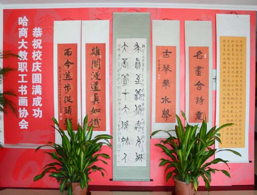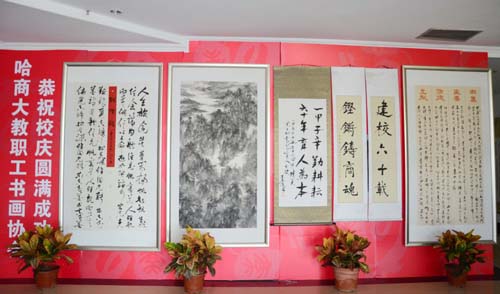 此次展出的百余幅书画作品,紧紧围绕校庆“总结经验,交流学术,校友发展,合作提升”的主题,弘扬办学传统,展示办学特色,通过艺术创作赞颂了建校60年来取得的辉煌成就,表达了师生员工爱国爱校的美好情怀。