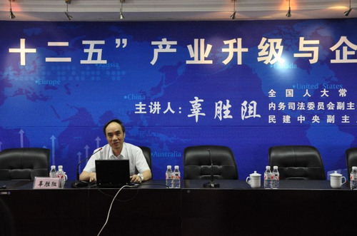 全国人大常委、内务司法委员会副主任、民建中央副主席、博士生导师辜胜阻教授作学术演讲
