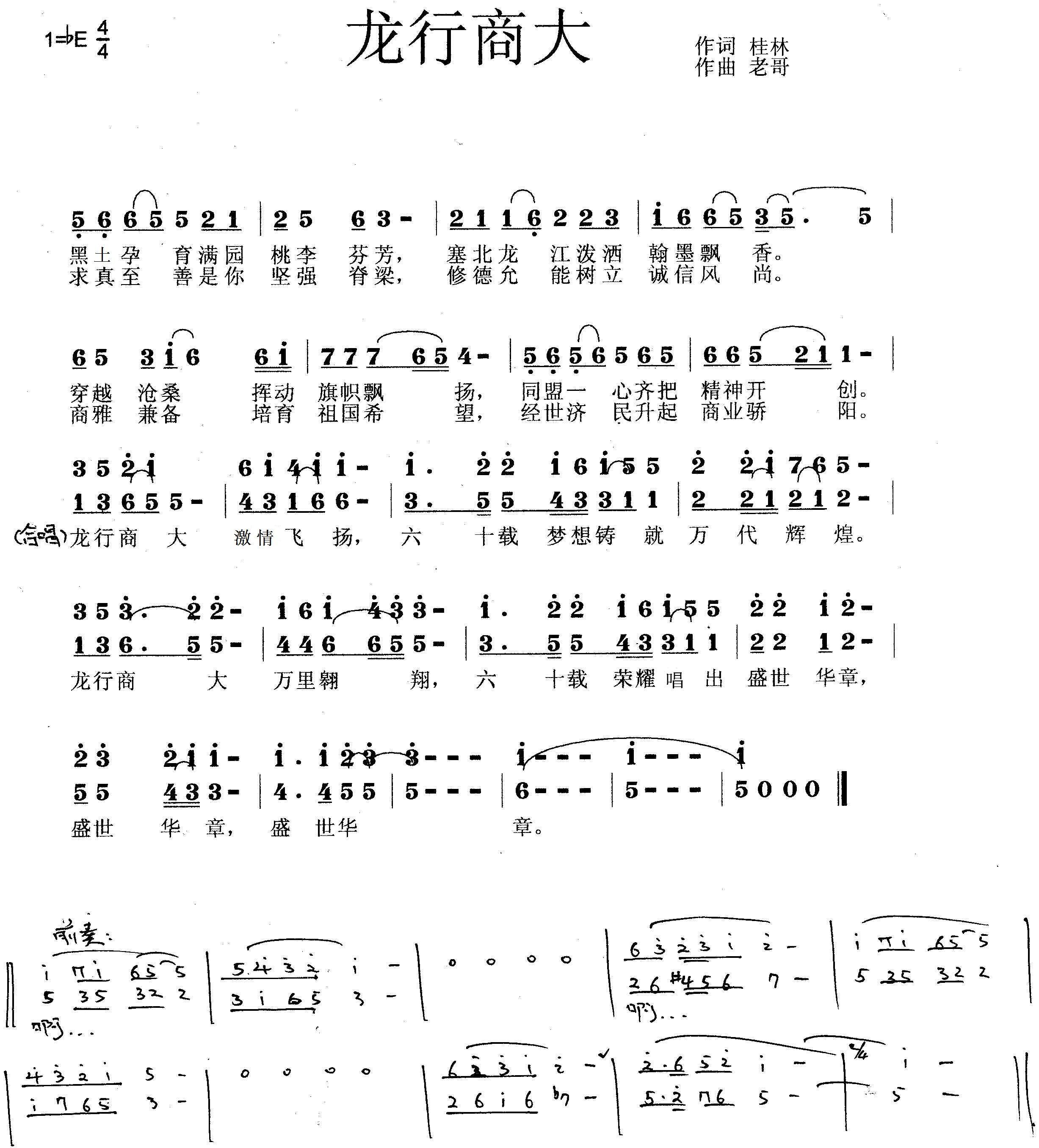 附:60周年校庆合唱曲《龙行商大》歌词及简谱