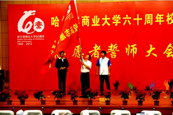 8月21日晚5点,我校60周年校庆志愿者誓师大会在专家公寓学术报告厅隆重启动,校党委副书记、校庆筹备工作领导小组副组长、校庆志愿者总顾问杨殿军教授将校庆志愿者总队队旗庄严地授予了志愿者,标志着校庆志愿者已经整装待发,将以最饱满的精神,最周到的服务,最热情的接待喜迎四方宾朋,现在,我们可以骄傲地宣布:我们准备好了!