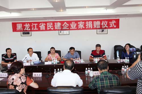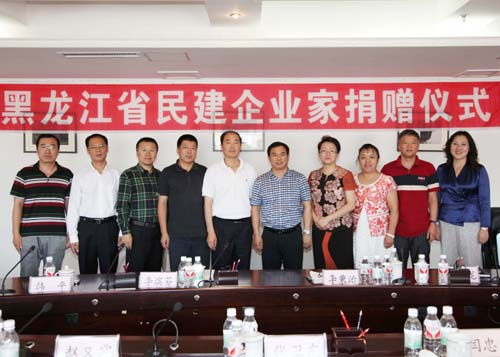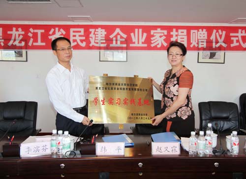 2012年8月30日上午,民建企业家捐赠仪式在我校行政中心四楼会议室隆重举行。出席捐赠仪式的有民建省委组织部张卫东部长、外联部闫忠义部长、宣传部韩明主任,民建企业家——黑龙江省乳家农业科技开发有限责任公司赵又霖董事长、哈尔滨市国泰贸易公司马任远董事长;哈尔滨商业大学党委副书记李秉治教授,党委统战部李滨芬部长、潘俊峰副部长,学工部白云龙部长,经济学院党总支书记韩平教授,民建省直五支部即商大支部主任、经济学院景侠教授。白云龙部长主持了捐赠仪式。