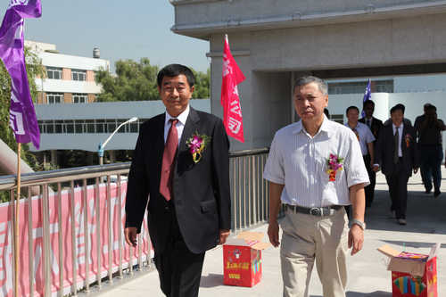 横跨学海街、连接我校东、西两校区的过街天桥工程,今天上午举行了竣工剪彩仪式。省发改委和松北区政府各主管部门的领导、校党委书记刘德权、副校长于树彬和校内各有关部门的领导、学生代表,设计、施工、监理等单位的领导参加了剪彩仪式,党委宣传部部长李德学教授主持仪式。省发改委朱建忠处长、松北区建设局高海庆局长、校党委书记刘德权、教师代表谭士元、学生代表王苏然、省六建建筑公司宋祝总经理,欣然为过街天桥的落成通行进行了剪彩。