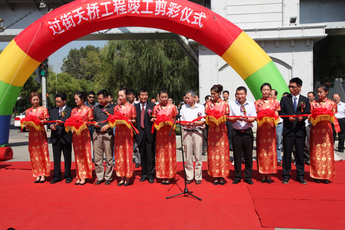 领导、嘉宾和师生代表为过街天桥剪彩