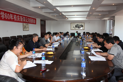8月31日下午,在我校60华诞即将到来之际,学校在行政楼三楼会议室召开了60周年校庆新闻记者通报会。校党委副书记李秉治与省内外15家新闻媒体的朋友出席会议。校党委宣传部、统战部、研究生学院、教务处、科研处、学工部等职能部门负责人参加了会议。会议由校党委宣传部部长李德学教授主持。