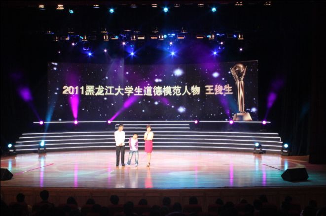7月10日,2011年度黑龙江省大学生年度人物暨大学生道德模范人物颁奖典礼在哈尔滨工程大学启航剧场隆重举行,我校计算机与信息工程学院学生王俊生喜获2011年度黑龙江省大学生道德模范人物荣誉称号。校党委副书记杨殿军、校党委学生工作部部长白云龙、校团委老师贾妮燕、王鹤腾及我校部分学生干部代表应邀出席了颁奖典礼,共同见证了王俊生同学的感人事迹和获奖历程。