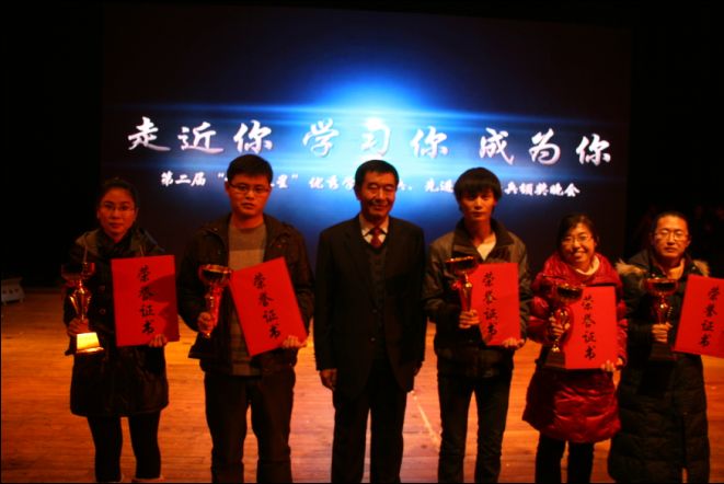 刘书记在我校学生标兵表彰大会上为王俊生颁奖(右三为王俊生)