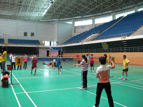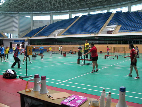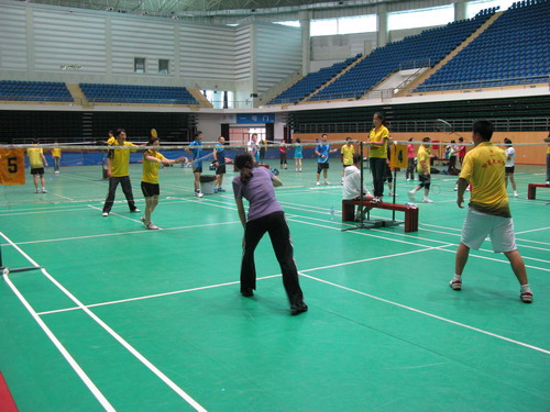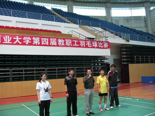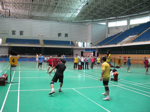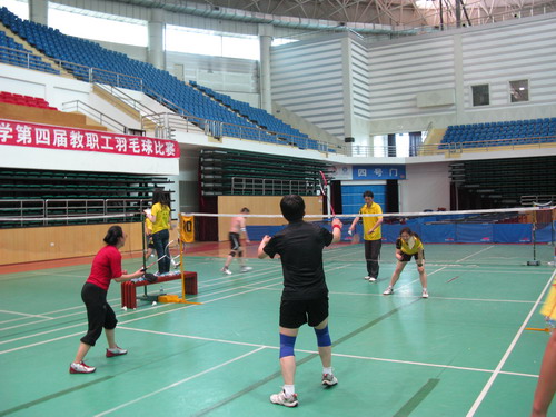 2012年6月9日上午8:30,校工会举办的“迎校庆”教职工羽毛球比赛在北区体育馆拉开了帷幕,各分工会有近100余人参加了比赛,本次比赛共设立了男子单打、男子双打、女子单打、女子双打、混合双打五个项目。