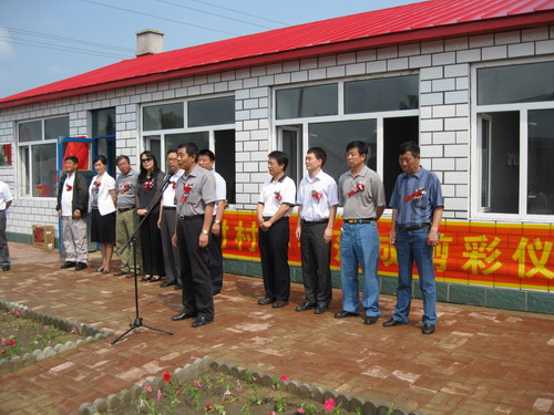 6月20日由我校捐资建设的绥滨县中和村村委会正式投入使用,从此,中和村告别了多年来没有办公场所历史。刘德权书记在致辞中对中和村村委会的落成表示祝贺,他说:中和村是哈尔滨商业大学按照省政府的部署定点帮扶的贫困村。与中和村结成帮扶对子,为中和村做实事是我们义不容辞的责任。在我们的共同努力下,中和村村委会的落成、水稻育秧大棚的建设等方面取得了一系列的成果。下步,我们将进一步探索帮扶方式。希望能以此次揭牌为契机,加快绥滨县社会主义新农村建设步伐和种植业结构调整步伐,促进中和村早日富裕起来。刘德权书记和绥滨县委书记康晓峰为中和村村委会揭牌。工会主席李晓梅代表学校向中和村村委会捐赠了电脑、桌椅等办公用品。