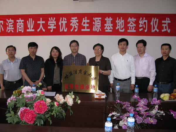 为加强本科招生宣传,切实提高生源质量,实现与省重点中学的无缝对接,近日,由校党委副书记杨殿军教授带队,学生工作处处长冉庆国、副处长金代志及学工处相关工作人员赴省内八所省重点中学建立了哈尔滨商业大学优秀生源基地。