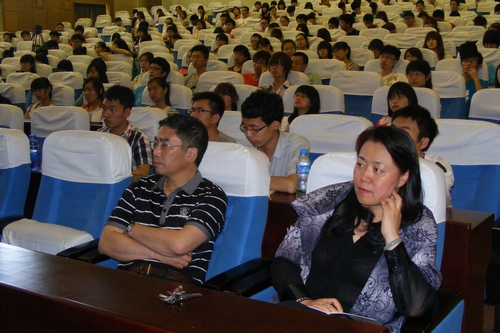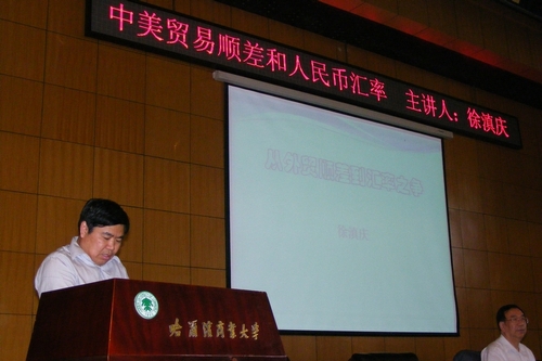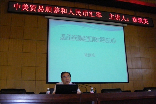 2012年6月7日下午,我校科技处、网络中心和金融学院在我校国际学术报告厅联合举办了一场学术讲座,著名经济学家、加拿大西安大略大学休伦学院终身教授、北京大学中国经济研究中心兼职教授徐滇庆老师为金融学院和其他学院学生作了题为“对美贸易顺差与人民币汇率”的学术讲座。讲座由金融学院院长李国义主持。校工会主席李晓梅、科技处处长刘晓峰、副处长徐耀群、网络中心主任韩冬梅、金融学院党总支书记钱雨春以及部分老师、研究生等也到场听讲座。讲座开始之前,副校长张晓丹教授与徐滇庆教授进行了交流。