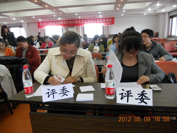 2012年5月9日晚9点,哈尔滨商业大学英语演讲大赛的复赛在行政楼612圆满结束。