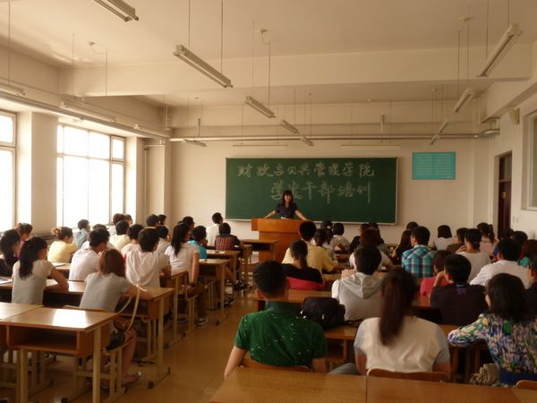 财政与公共管理学院党总支副书记金菊在给学生干部培训